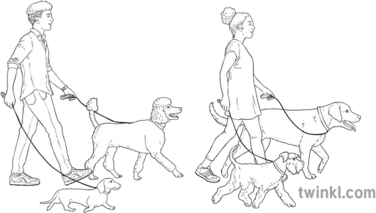 Man And Woman Walking Dogs Animals People Ni Linguistic Dog Leash Png People Walking Dog Png PNG transparent background