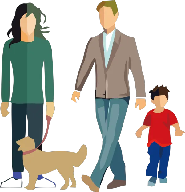 Family Day Dog Walking Cartoon Standing Happy Cartoon Family With Dog Png People Walking Dog Png