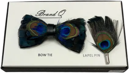 Peacock Feather Bowtie With Matching Lapel Pin Formal Wear Png Peacock Feathers Png PNG transparent background