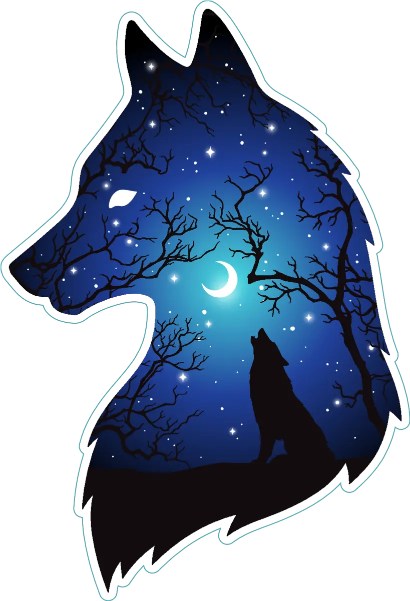 Silhouette Of Wolf Moon And Stars Double Exposure Sticker Moon Wolf Png Moon Silhouette Png